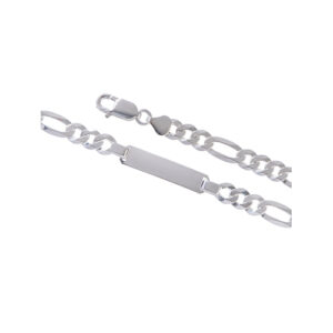 Silver Figaro 3+1 ID Bracelet (100-160) Metal: Silver Karat: 925 Type: Figaro Clasp Type: Lobster Length: 19cm/21cm Size: Please select drop-down menu to see various ID plate Size options.