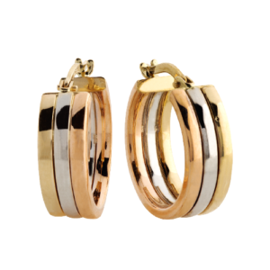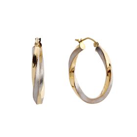 9Kt Rose Gold & White Gold Two Tone Twisted Hoop. Metal: Rose & White Gold Karat: 9kt Dimension: Height 28mm Size/Style: Hoop Stone: N/A Code: C38368-9-0