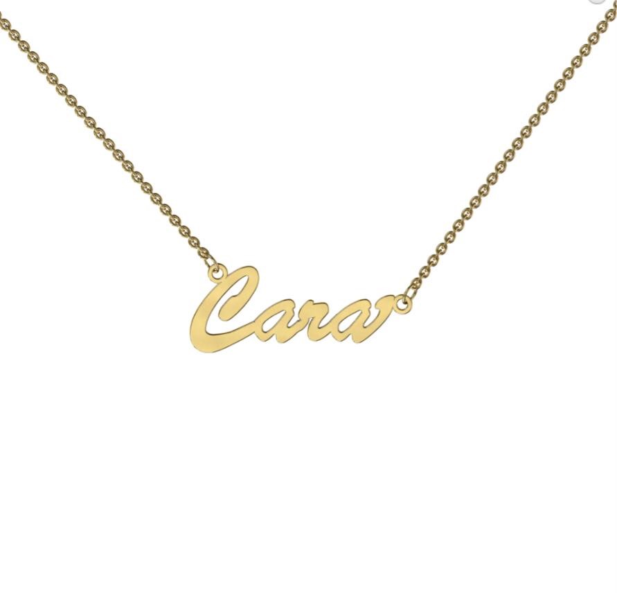 Cut out name in the Bond Font available 9kt Yelow Gold, Rose Gold and Sterling Silver. Comes with a 45 cm chain. Please write name on notes before checking out.