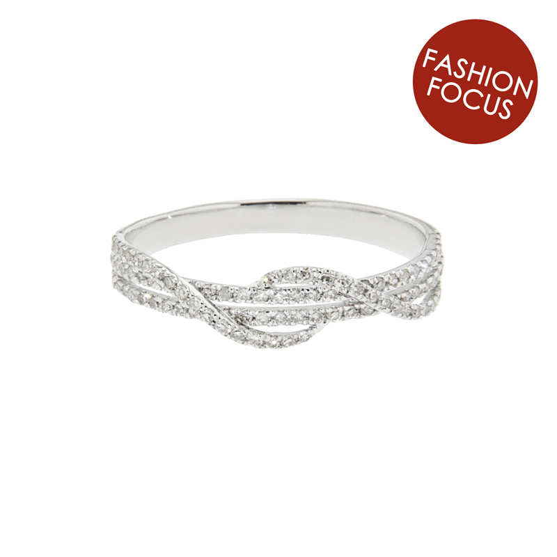9kt white gold diamond cross over ring set with 96 round brilliant cut diamonds totalling 0.29ct IJ SI