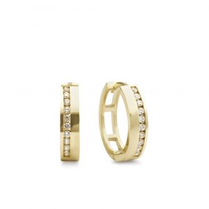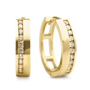 Quick View Jewellery 9Kt Yellow Gold Cubic Zirconia Huggie Earring 9kt Yellow Gold Cubic Zirconia Huggie Earring. Metal: Yellow Gold Karat: 9kt Dimension: 3.50 mm width x 1.30 mm thick with inside diameter of 11.50 mm Size/Style: Huggie $500.96 Quick View